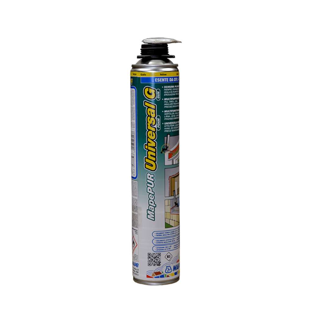 A MapePUR Universal Foam M egy egykomponensű, öntáguló hab túlnyomásos spray flakonban, melyen egy kar található a termék adagolására, míg a MapePUR Universal Foam G egy egykomponensű, öntáguló hab túlnyomásos spray flakonban, mely a speciális MapePUR Gun Standard pisztollyal együtt használható a termék adagolására.